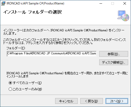 インストールフォルダを確認します。