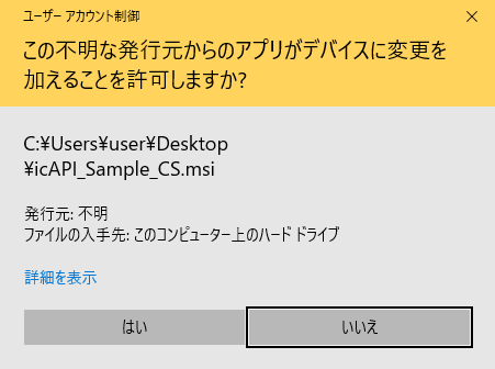 ユーザーアカウント制御を許可します。