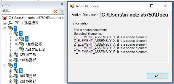 ちなみに上記画面のxyz(直線軸)AB(回転軸)をアドイン経由で動かそうと考えています。