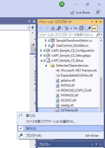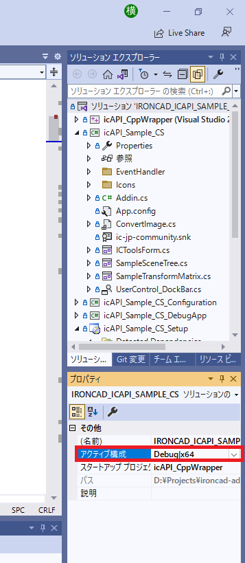 IRONCAD2024から推奨のVisualStudioが2022に変更になっております。 また、サンプルのビルド時はソリューションの設定をDebug|x64 icAPI_Sample_CS_SetupのUxTheme.dllは除外に設定してください。 よろしくお願いいたします。