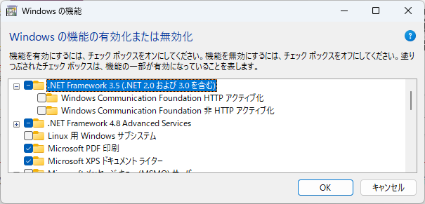 .Net Framework3.5は添付のようにインストールされていました。